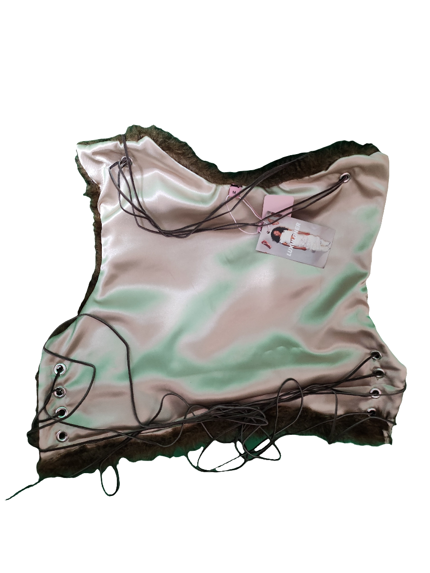 ZIA Faux fur open back lace up top